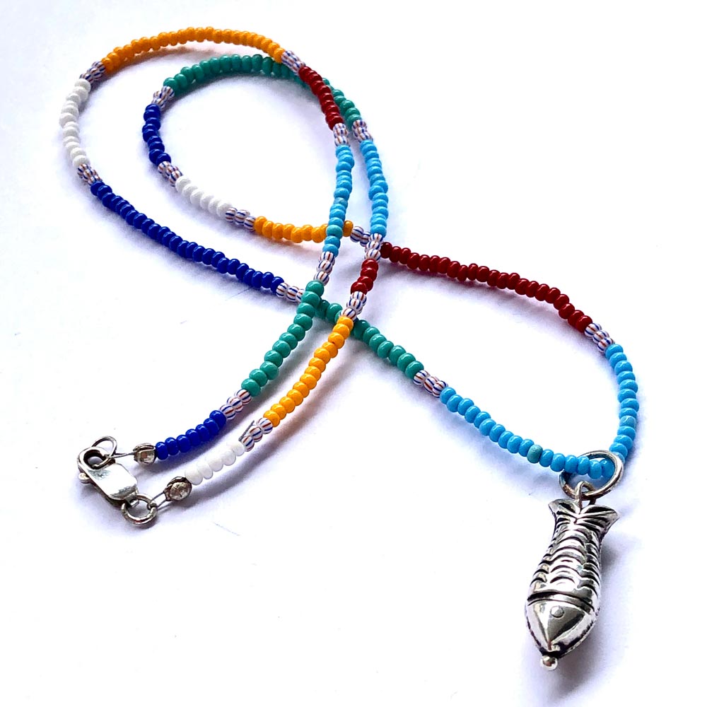 Diese zarte Halskette bringt gute Laune und Farbe in Ihr Antlitz. Man kann sie auch wunderbar mit anderen Schmuckstücken im Layering Look kombinieren. Wie immer bei esperlt handelt es sich um ein UNIKAT und ist somit nur einer Person vorbehalten, es zu tragen. Viel Freude damit!